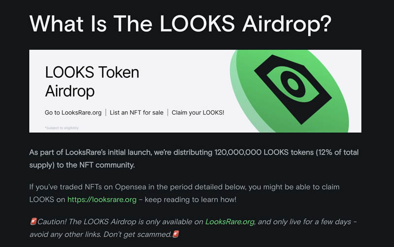 opensea 交易满 3 eth 的用户可领取 looks 代币。
