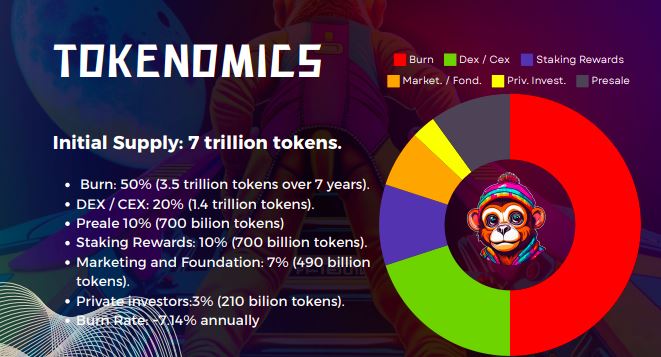 luiz币遵循精心构建的代币经济学模型,通过受控燃烧和激励持有机制来平衡供需。 luiz币的初始总供应量设定为7 万亿个代币,分配如下: