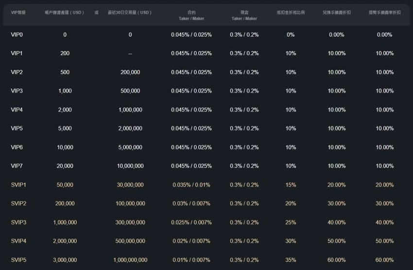 - 当交易量低于一定金额时,手续费率可能较高;而随着交易量的增加,费率会逐渐降低。