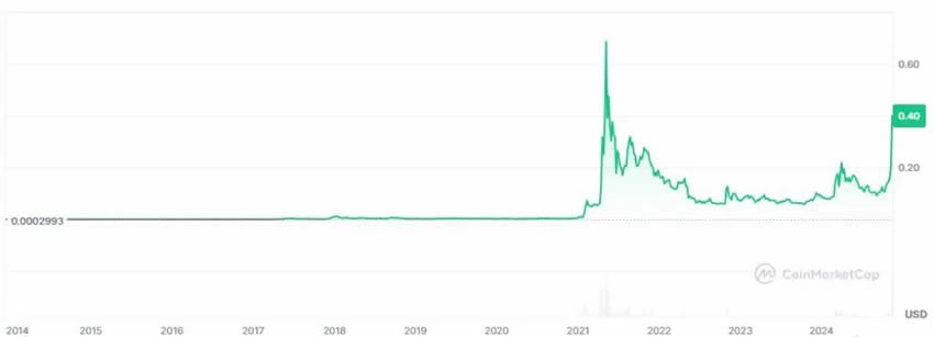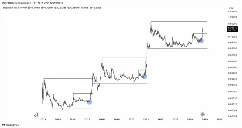 近期川普当选美国总统,任命马斯克担任政府效率部门(doge)的领导者,这一消息于2024 年11 月发布,再次将狗狗币doge 四个大字展示在大众眼中,并又带动了上涨浪潮。