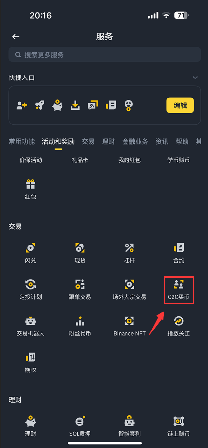 • 在app首页点击“购买加密货币” > “c2c交易”。