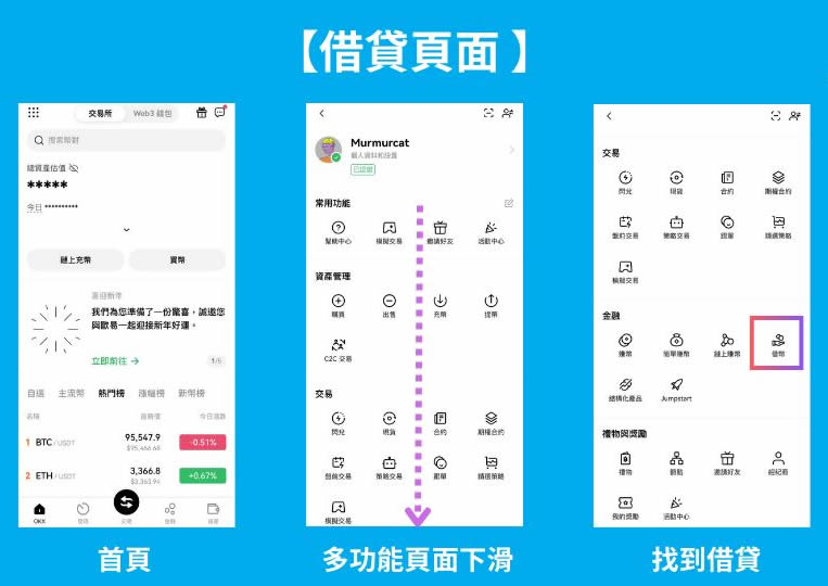 - 资产管理:借币后投资于其他平台或进行流动性挖矿。