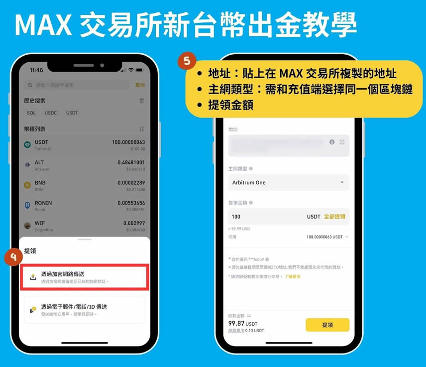 回max 交易所点【资产】页面→【提领】→【提领】→选择提领币种