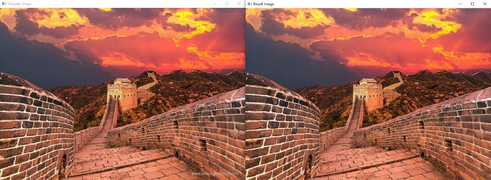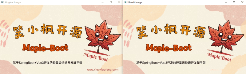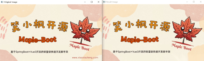 可以看到,图片底部的水印去掉了,仔细看图片中的文字颜色有点细微变化,这就是因为部分像素颜色被误伤了导致的。下面看下方案二,可以解决这个问题。