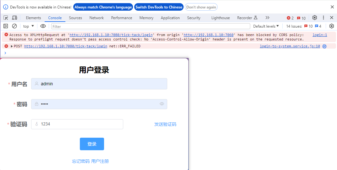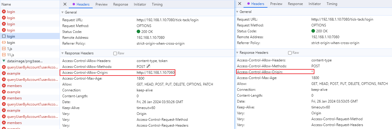 access to xmlhttprequest at ‘http://192.168.1.10:7080/tick-tack/login’ from origin ‘http://192.168.1.10:7060’ has been blocked by cors policy: response to preflight request doesn’t pass access control check: no ‘access-control-allow-origin’ header is present on the requested resource.