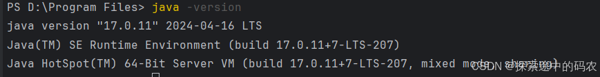 根据提示知道,需要反编译的jar包class file version 61.0,当前java运行环境versions up to 60.0,低版本不可以反编译高版本jar包,使用命令 java -version 查看当前jdk版本