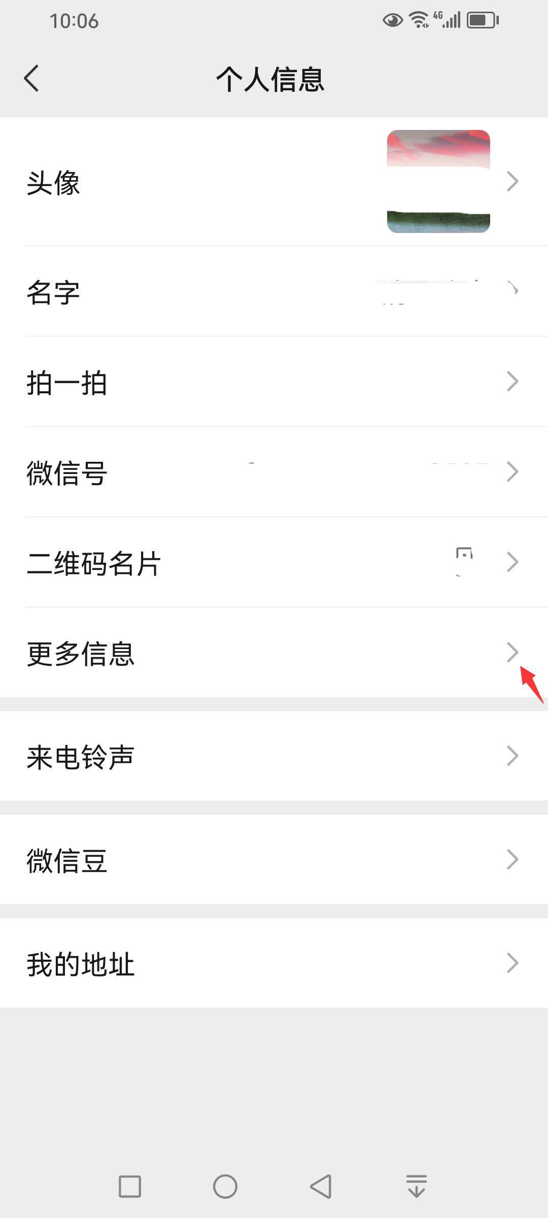 在打开的【个人信息】页面中,单击【更多信息】右侧的展开按钮。