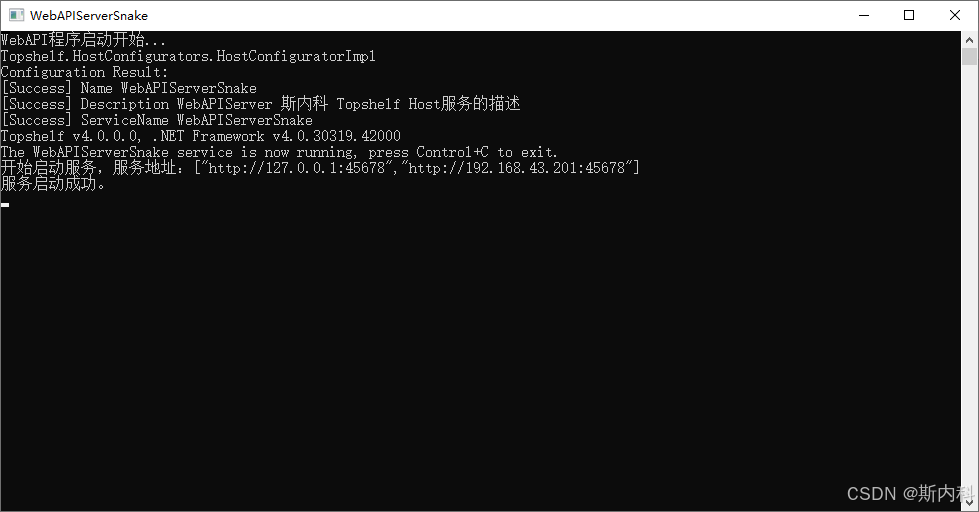 hostconfigurator.setservicename("webapiserversnake"); //服务名称