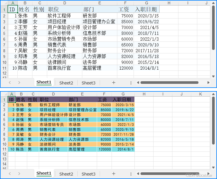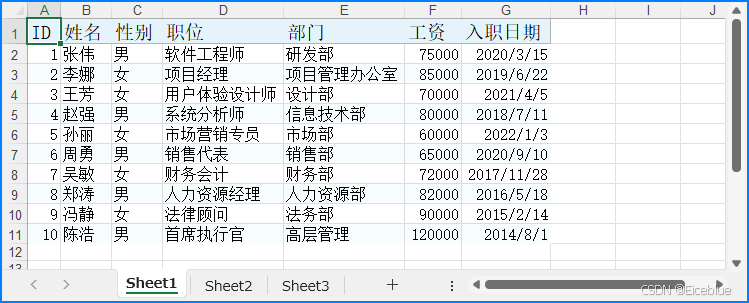 table.rows.add(1, "张伟", "男", "软件工程师", "研发部", 75000, datetime.parse("2020-03-15"));