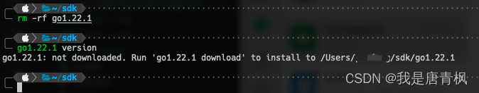 sdk是不能删除的,go1.22.1会读取sdk里面的源码,删除后会提示sdk没有下载。