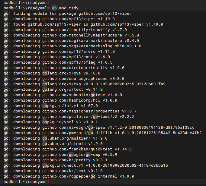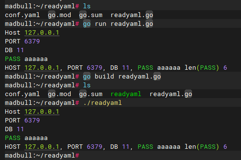 也可以编译后再执行二进制文件: go build readyaml.go,编译后,创建了编译后的文件 readyaml。