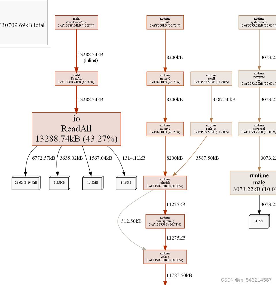 可以在图片中直观地看到,调用过程中每个函数的内存使用占比。