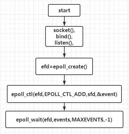 上图说明了epoll生成描epoll表的基本流程,生成socket用来绑定和监听新的连接,将该socket放入epoll内核表,然后调用wait等待就绪事件。