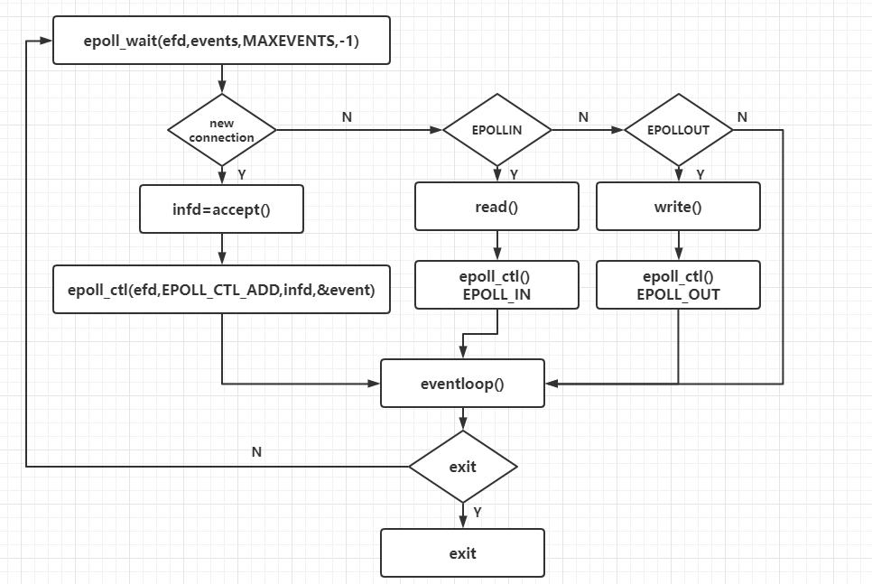 当epoll wait返回就绪事件时,判断是否是新的连接,如果是新的连接则将描述符加入epoll表,监听读写事件。如果不是新的连接,说明已建立的连接上有读或写就绪事件,这样我们根据epollout或者epollin进行写或者读操作,上图是echo server的基本原理,实际生产中监听epollin还是epollout根据实际情况而定。以上是单线程下epoll工作原理。