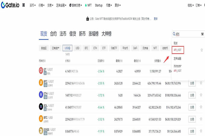 第三步:点击交易apx/usdt交易对,进入购买页面