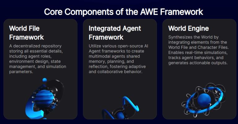 - 世界文件框架:一个去中心化存储,储存所有必要的细节,如代理角色、环境设计、相关性、模拟参数等。