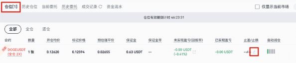 - 在页面下方点击「仓位」查看您的仓位讯息,追踪强平价格或设定止盈止损。