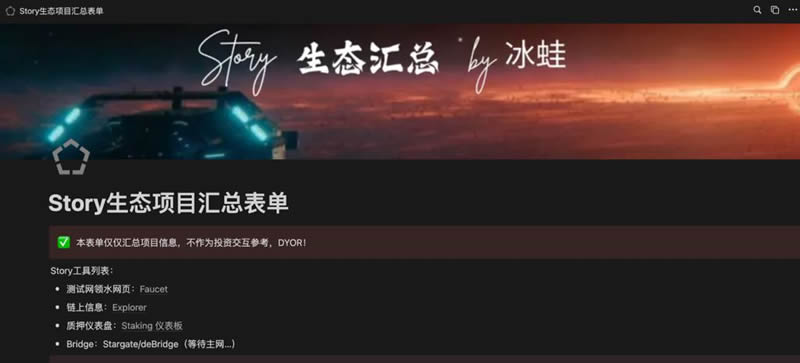 story protocol 在经过近月的测试网交互和之前笔者介绍过的徽章任务等,近期传出tge 将至的消息,目前story笔者交互方式仍着重在领水参与生态各项目,以下列举各板块项目。
