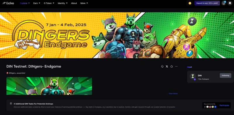 之前笔者有介绍过din 挖矿、推特等交互方式,din 近期官宣表示测试网来到最后阶段,本周在galxe 推出dingers 系列任务,根据完成阶段可获得相应身份组,且身分组为明牌空投的主要依据,以下说明该如何参与本期测试网任务。