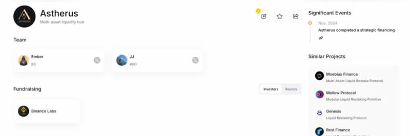 astherus 在去年11 月种子轮融资由binance labs 领投,且同时为币安孵化器第七期的项目之一,未来上币安的机率很高。