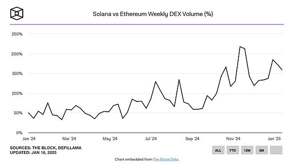 随着 solana dex 交易量已经日常超越以太坊生态,meme 所带来的助力也会越来越强,唯一的问题就是 meme 就是 solana 的一切,在 defi 之外的领域恒强,随着 hyperliquid 日渐独立,未来的 dex 交易很有可能是 solana 和以太坊分居现货,hyperliquid 独霸衍生品的市场格局。
