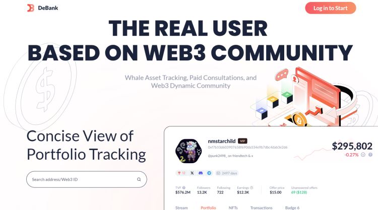 debank 是一项用于管理去中心化金融的一体化服务,提供用于分析区块链活动、跟踪投资组合以及与各种区块链上的各种 defi 协议交互的工具。主要功能包括实时投资组合跟踪、风险分析、钱包活动研究以及对 70 个以太坊兼容区块链的支持。