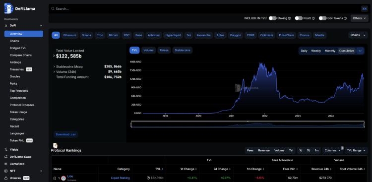 defillama 是一个去中心化金融分析平台,于 2019 年推出,可跟踪不同区块链上的数百个 defi 协议。例如,它聚合了 tvl 数据,这使用户能够获取有关流动性、代币价格和交易量的最新信息。defillama 提供协议、流动性池和收益策略的详细分析,以及研究趋势的历史数据。所有这些都是免费的,没有广告。