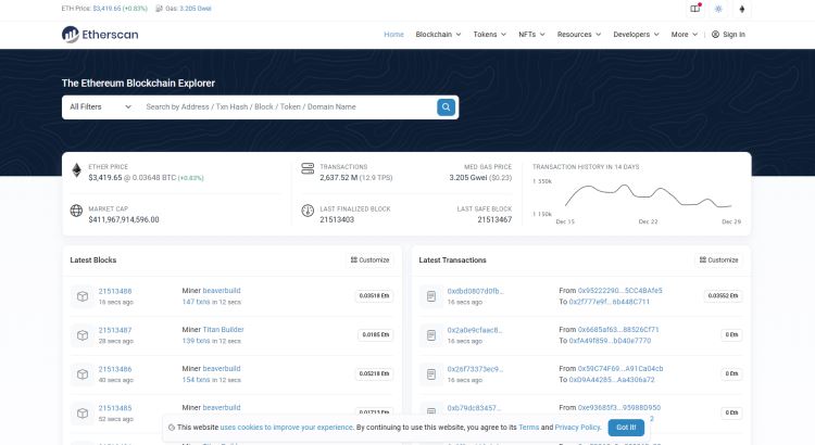 etherscan 是以太坊网络的最佳区块链浏览器;于 2015 年推出。该平台提供了一个用户友好的界面,用于跟踪交易、分析钱包、验证智能合约和以太坊区块链上的其他数据,提供有关网络上操作的透明度和详细信息。etherscan 用于投资管理、项目研究和欺诈活动检测。
