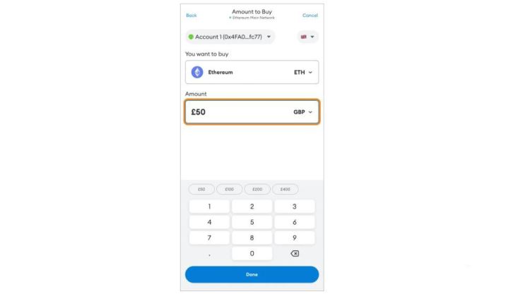 4、使用屏幕顶部的您要购买菜单,选择要购买的代币;输入希望的金额,即您要购买的代币价值(以法定货币计算)。
