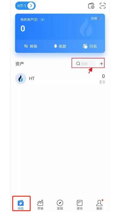 1、打开tokenpocket,在【钱包】页面点击【+】