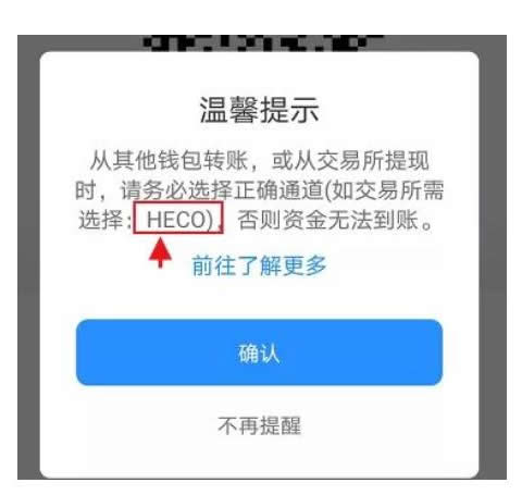4、复制地址,这个是heco的钱包地址,只能接受火币交易平台转出来的币,而且火币交易平台在转出的时候要选择heco链的。