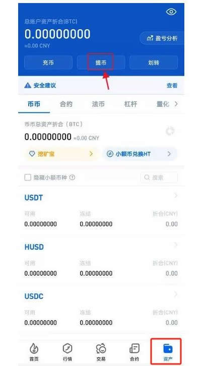 5、从交易平台提币到tp钱包。在tp钱包app中选择资产页面点击提币