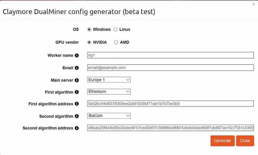 下载claymore 档案并解压缩后,您需要产生一个设定档来运行它。有许多线上工具可以帮助您做到这一点,尽管很方便,nanopool 也有一个。