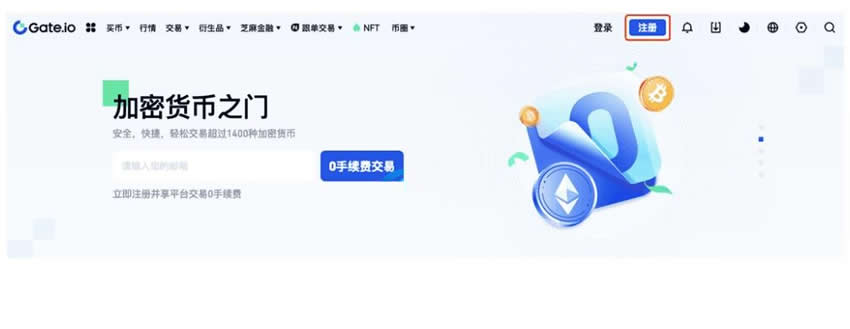 1、打开gate.io芝麻交易所官网(官方注册 官方下载),点击“注册”按钮,进入注册页面。