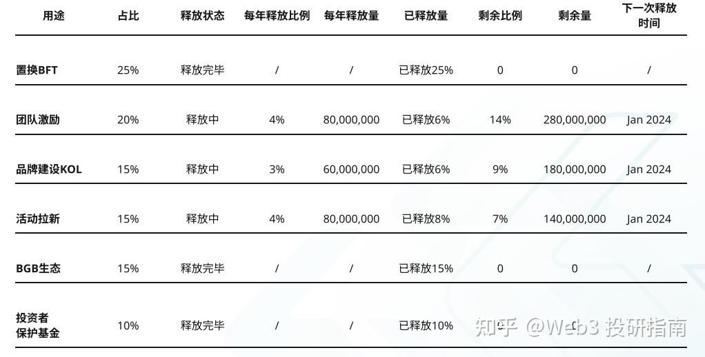 将在2024年1月释放2.2亿bgb,供应量增加总量的11%。2024年1月的代币释放量对bgb价格是一个考验。