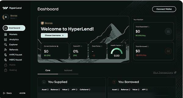 hyperlend 是一个原生于 hyperliquid 生态的借贷平台,提供三种不同类型的借贷池:核心池、独立池和点对点池。