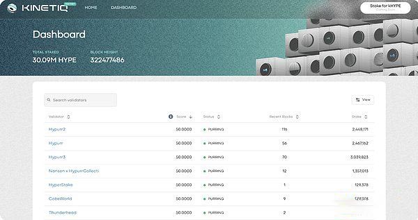 不过,kinetiq 并不是简单地将 hype 平均分配给所有验证者,而是采用了一套评分系统。这确保了验证者始终在线并正常运行。如果某些验证者未能达到 kinetiq 的标准,他们将失去被委托的 hype,而这部分代币将重新分配给其他更可靠的验证者。