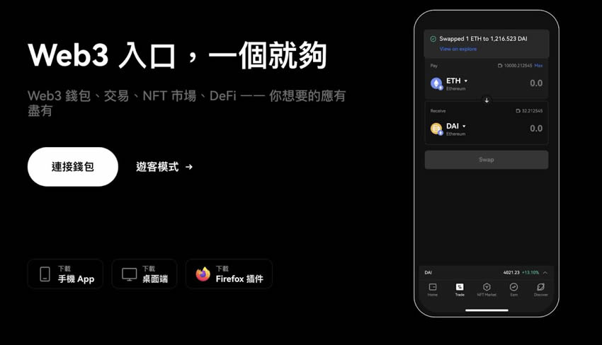 okx 交易所于自家产品上推出的okx web3 钱包, 是在app 和网站中就可以使用的去中心化钱包,可以不注册okx 交易所直接使用,方便使用者在中心化交易所与去中心化钱包之间使用。