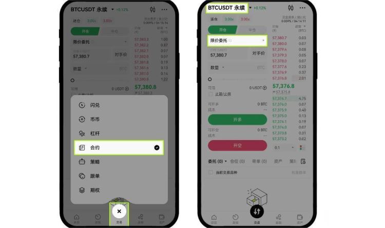 1、打开欧易官网下载app后(点击注册),选择【交易】-【合约】,选择您要交易的合约交易对。这里以比特币为例,选择btc/usdt。