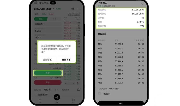 上述全部内容就是对合约分段委托怎么操作这一问题的教程解答,分段委托是一种常见的交易策略,特别适用于大额交易或在流动性较低的市场中操作。它通过将大额订单分成多个较小的部分逐步执行,帮助减少市场冲击、优化执行价格,并隐藏交易者的意图,从而在更复杂的市场环境中提高交易效率。需要提醒的是,该操作也存在一定的风险,投资者进行交易前一定先了解清楚交易规则。