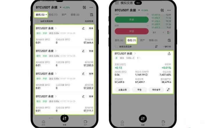 5、未成交的单子,可在委托单中查看,已成交的单子,可在仓位中查看。