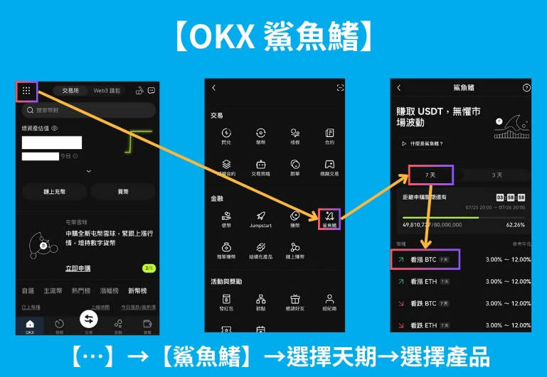 okx(官方注册 官方下载) 鲨鱼鳍结构型产品是okx 平台专属的理财产品之一,投资人可以投入u 去预测特定币种价格上涨/下跌的方向,以及价格是否会落入设定的区间当中。