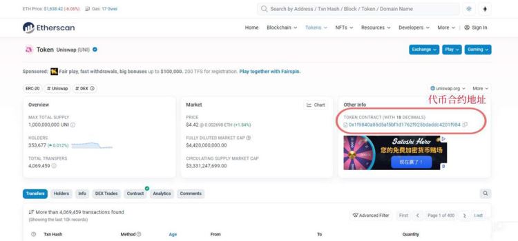 查一个币的合约地址方法有该币种对应的区块链浏览器或者官网查询。下文是通过区块链浏览器查找uni代币合约地址的教程:
