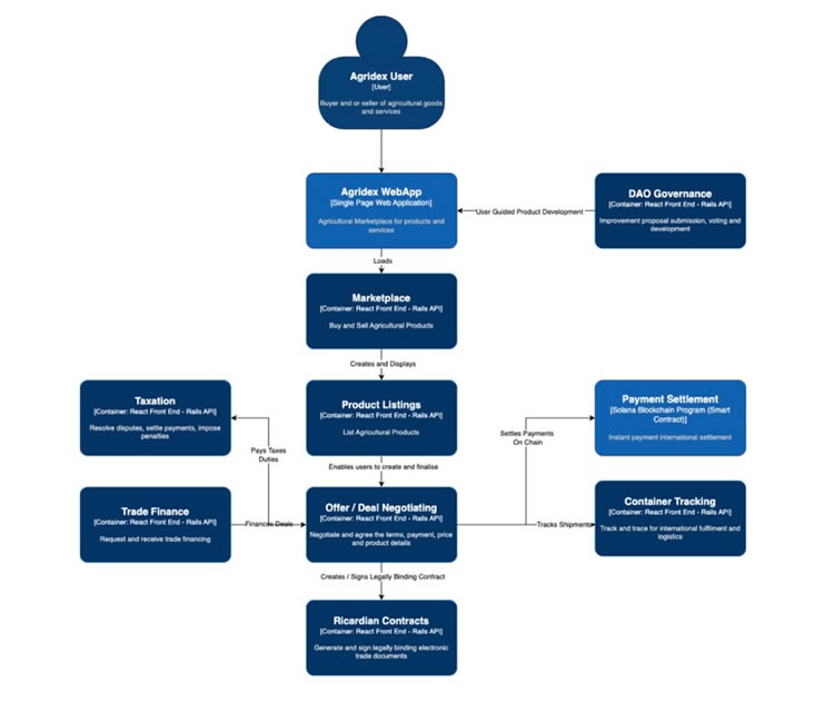 agridex 通过提供一个基于区块链的去中心化市场来应对这些挑战,该市场旨在促进透明度、问责制和公平性。通过利用区块链不可篡改的账本,agridex 降低了成本,增加了选择,打击了欺诈,并验证了交易商品的质量、来源和可持续性。该平台旨在解决效率低下、欺诈以及融资和保险渠道的问题,从而创建一个更加公平的贸易体系。