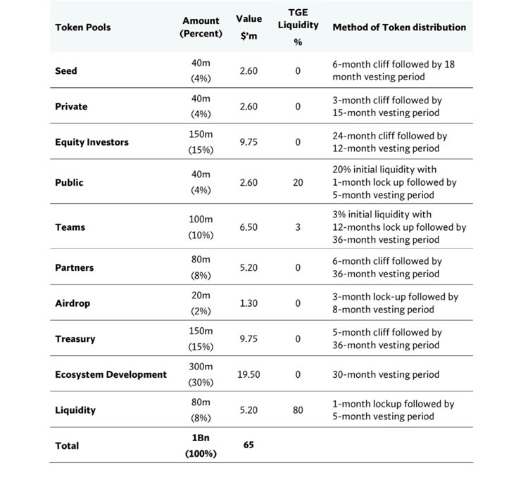 - 分配: 在没有公开发行的情况下分配到各个代币池。