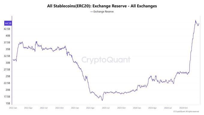 事实上,到 2024 年 12 月 31 日,币安的稳定币储备已升至 445 亿美元,这表明一个可观的流动资金池已准备好支持可能随时开始的资产购买。