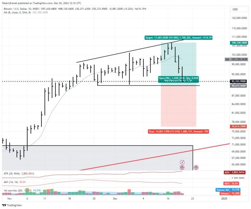 btc 在最近跌破 9.1 万美元大关后,本周末出现强劲反弹,目前小幅回落至 96000 美元左右。在此过程中,资深交易员 peter brandt重申了他对 btc 的看涨观点,并表示其未来可能会继续上涨。此外,其他链上指标也表明 btc 未来势头良好。在最近的分析中,brandt 表示,未来几天 btc 可能会达到 108, 358 美元。