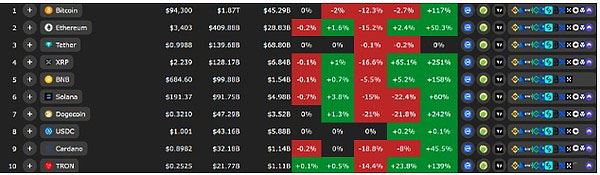 过去一年里,xrp 代币上涨了 251% 以上,是比特币 117% 回报率的两倍多。 cryptobubbles 数据显示,这使得 xrp 成为十大加密货币中表现第二好的货币。