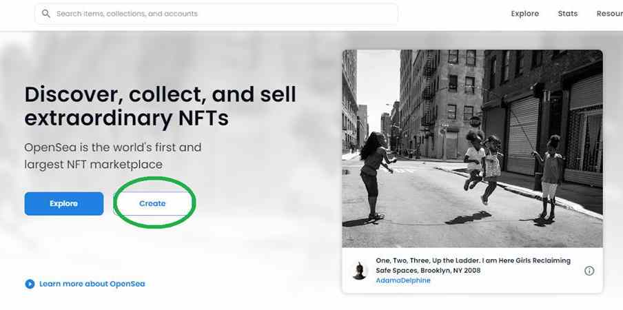 如果你不关心中心化或去中心化的程度,并且想快速创建以太坊nft,那么使用opensea可能是你的最佳选择。因此,请确保您已准备好metamask浏览器扩展。然后,访问opensea的官方网站。在那里,您将立即看到“创建”按钮: