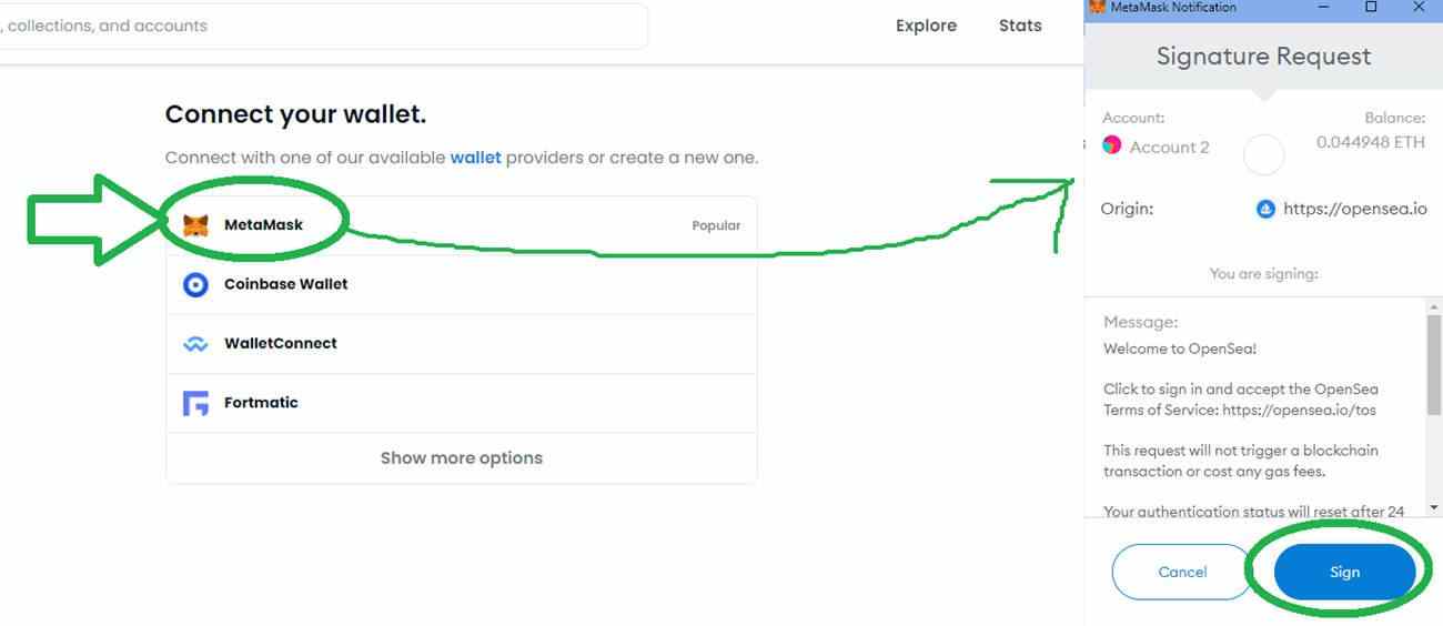 单击“metamask”后,您的metamask扩展程序将提示您签署签名请求: